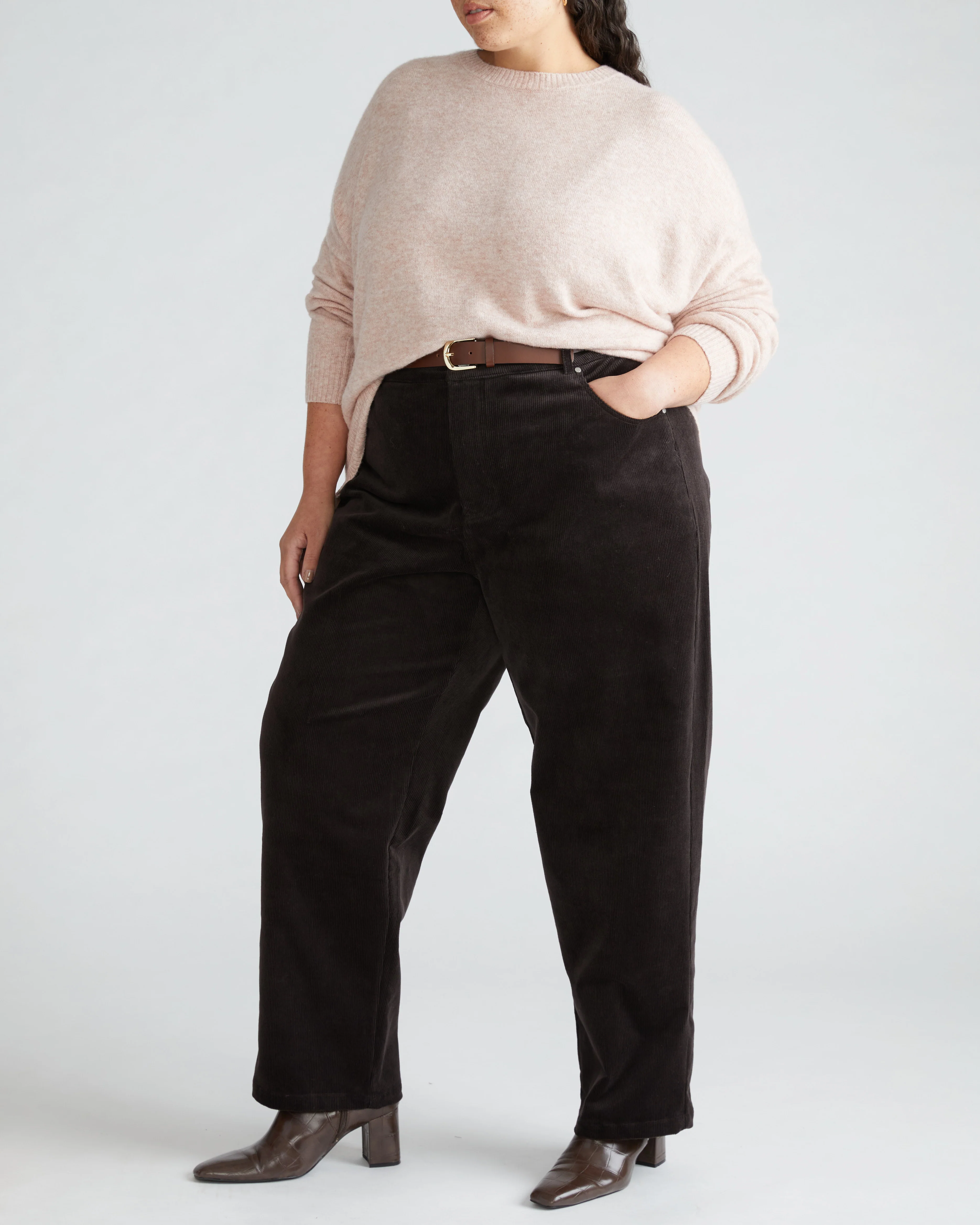 Finally, stretch corduroy. These are the pants you’ve been waiting for. Crafted from classic 14 wale corduroy with a refined pile and soft feel, these elevated cords are cozy and chic. They feature our signature high rise, standard fit through the hips, and an easy straight leg with a 30" inseam. What makes them special is the subtle denim detailing, like reinforced finishing at the waistband, pockets, and seams.