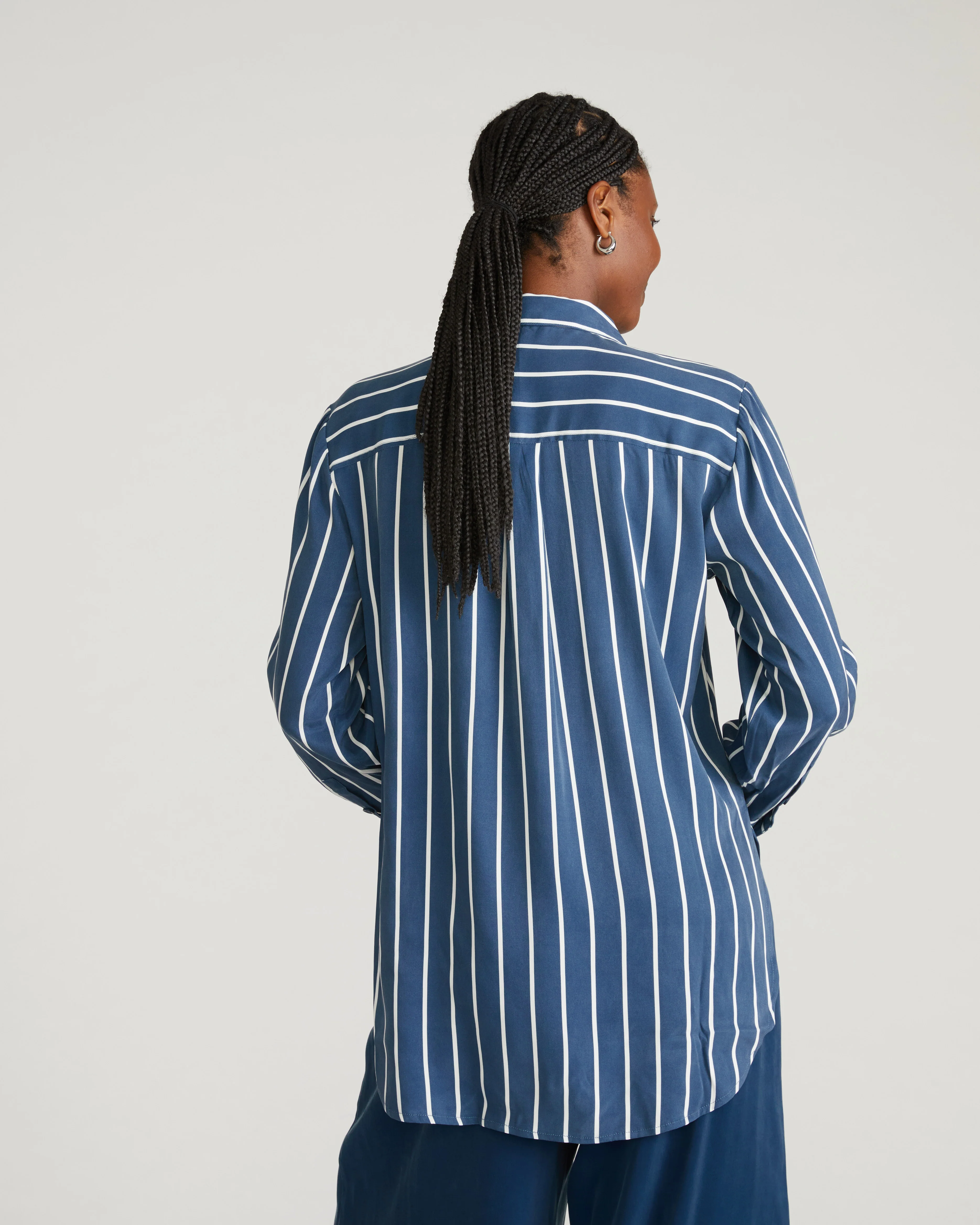 Cooling Stretch Cupro Artist Shirt - Ensign Blue/White Stripe